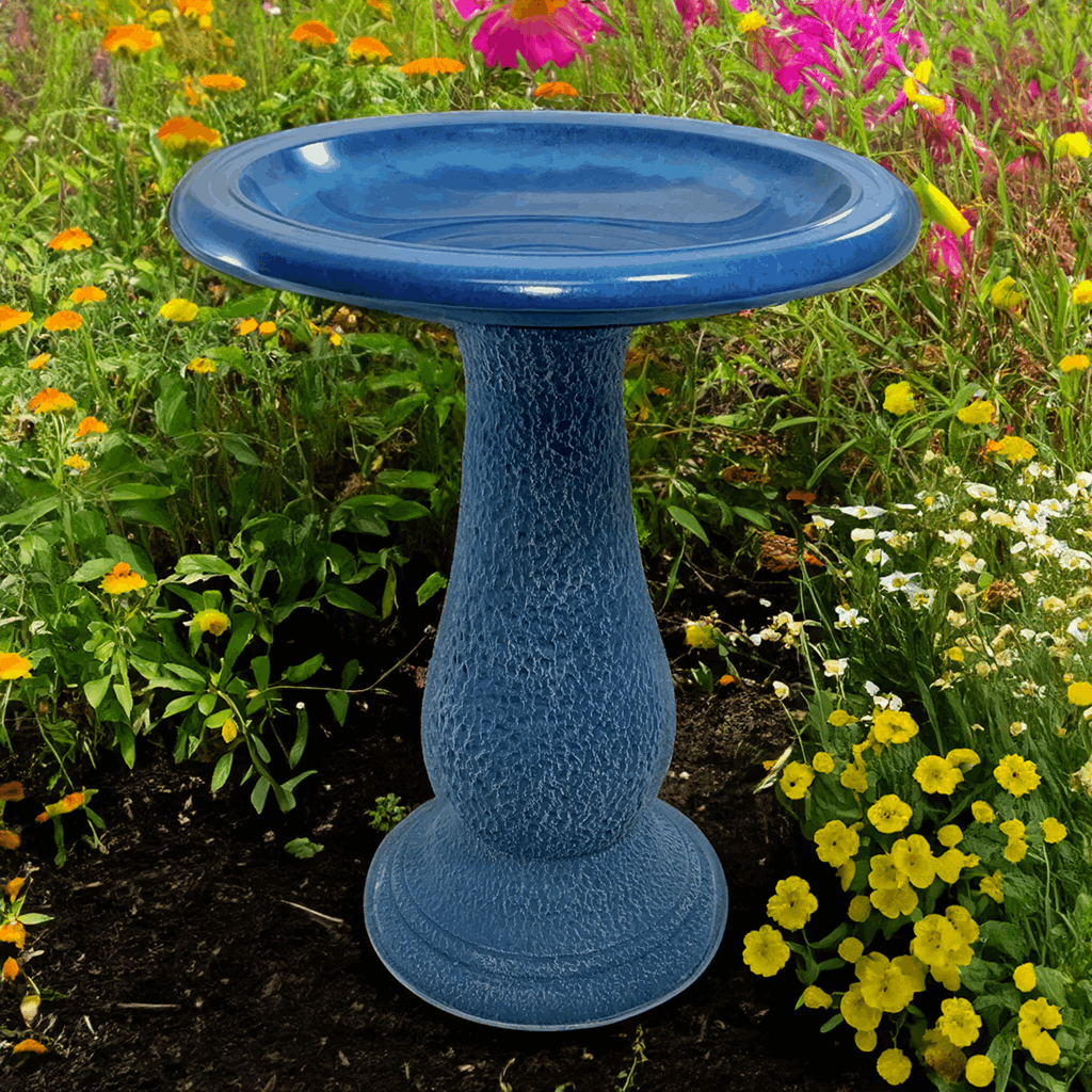This Fiber Clay Birdbath will add elegance and function to any garden, making it the perfect gift for the bird lover on your list! The finish on the bowl provides UV protection as well as easy clean-up and reduces staining. The hollow base can be weighted with sand for extra stability. Bowl is threaded and screwed into the base holding it secure. Quick and easy assembly. It is recommended to store in an enclosed area or indoors during cold temperatures. Actual product color and pattern may vary from the images shown due to dye lot changes.